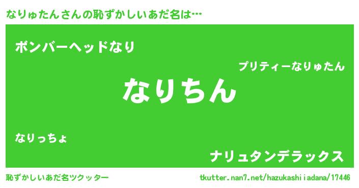 | 意味不明あだ名 | 『永久保存なりゅたん』『自称なりゅたん』 |