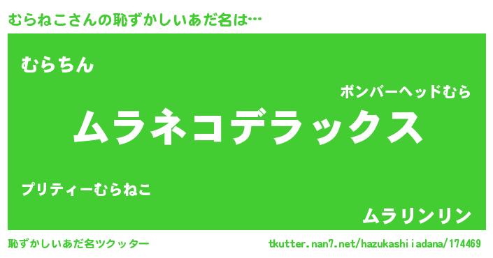 | 女子向けラノベタイトル風あだ名 | 『むらねこなんてお断りですっ。』 |