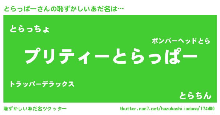 | 胡散臭い通販商品みたいなあだ名 | 『必ず成功する霊験あらたかなお札…その名も「とらっぱー」』 |