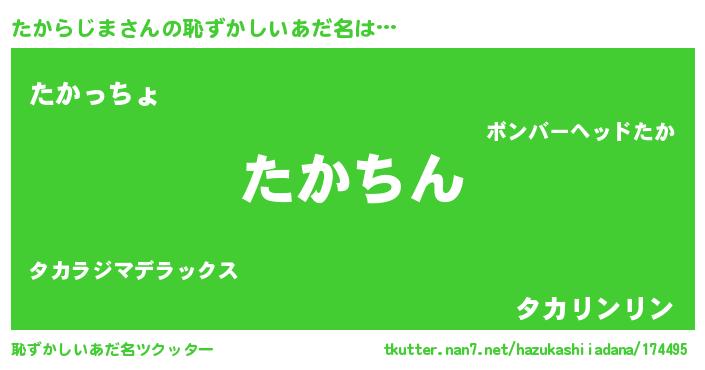 | ヒーロー風カッコイイあだ名 | 『ネオタカラジマ』『仮面タカダー』 |