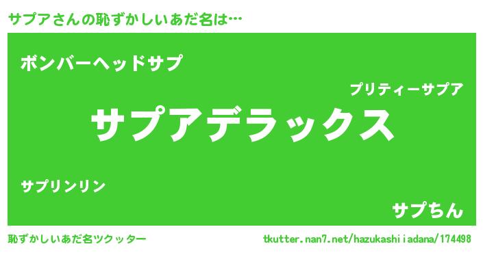 | 男性向けラノベタイトル風あだ名 | 『この素晴らしい世界にサプアを!』 |