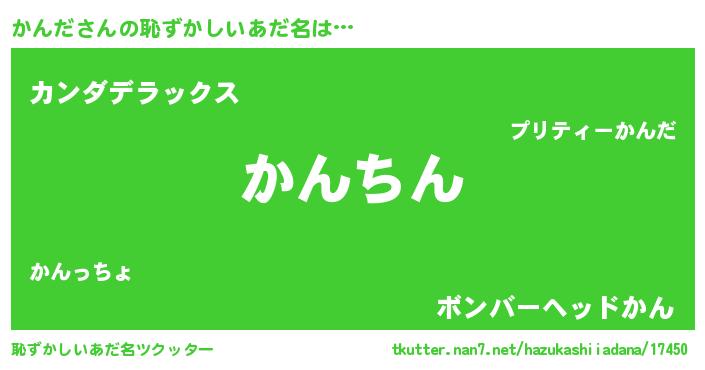 | ヘコむあだ名 | 『かんだ(笑)』『かんもー』 |