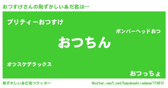 | 男性向けラノベタイトル風あだ名 | 『おつすけという概念が存在しない退屈な世界 』 |
