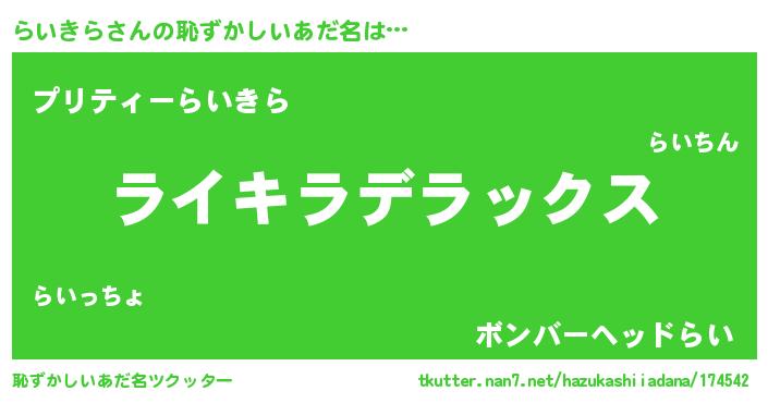 | ヘコむあだ名 | 『らいにゅー』『らいきら(小並感)』 |