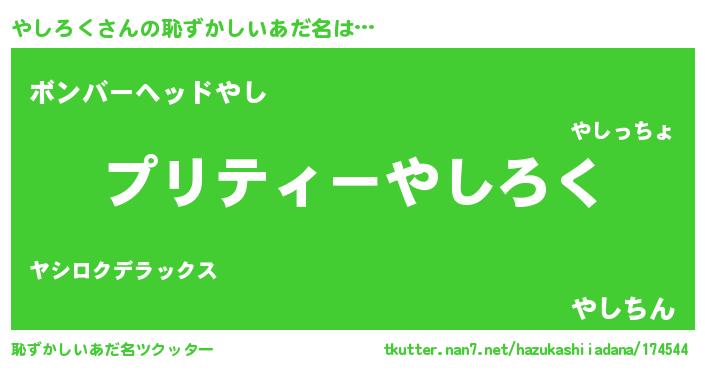 | ヒーロー風カッコイイあだ名 | 『スーパーヤシロク』『愛の使者やしろく』 |