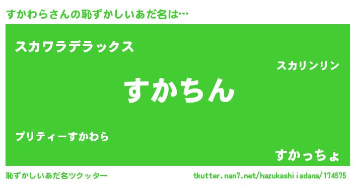 | 意味不明あだ名 | 『永久保存すかわら』『自称すかわら』 |