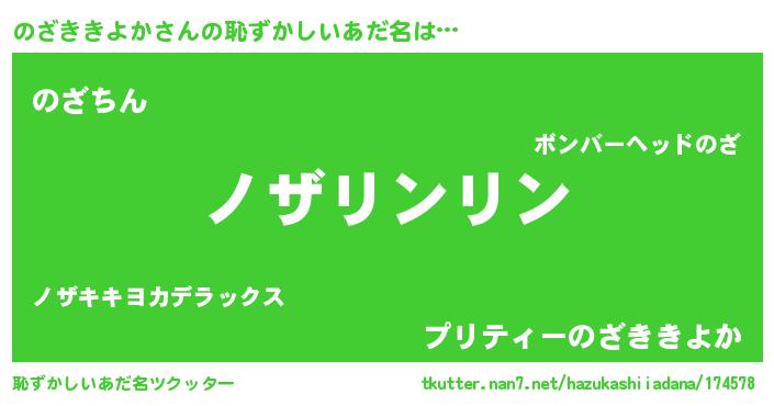 | ヘコむあだ名 | 『のざぷりん』『のざききよか(笑)』 |