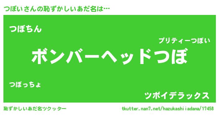 | ヘコむあだ名 | 『つぼい(遠い目)』『つぼもー』 |