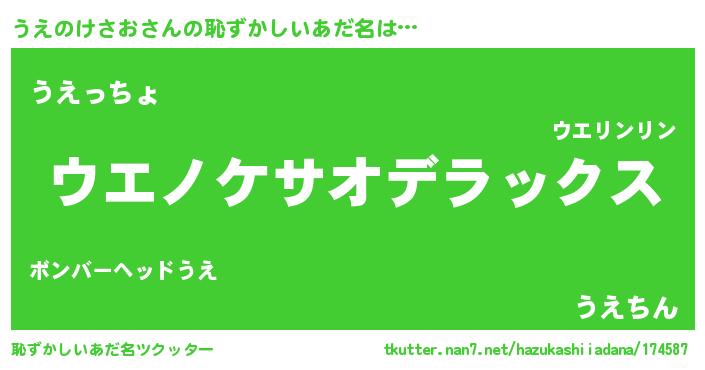 | 欧米人風あだ名 | 『うえのけさお・ステッグマイヤー』 |