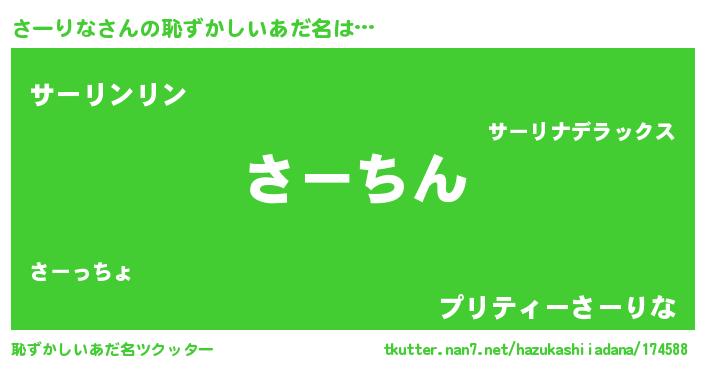 | ヘコむあだ名 | 『さーりな(小並感)』『さーを』 |