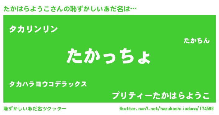 | 肩書あだ名 | 『たかはらようこ総理大臣』 |