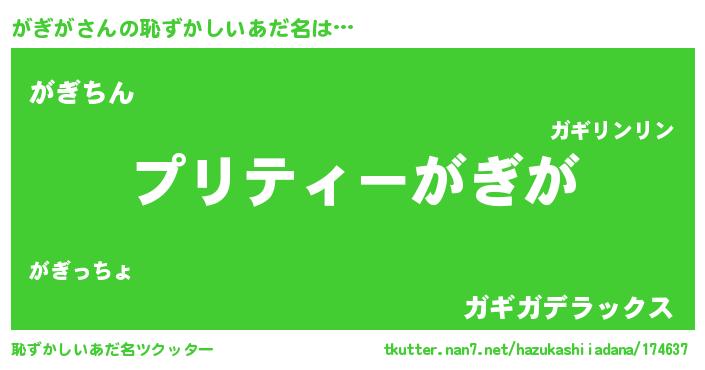 | ヘコむあだ名 | 『がぎもー』『がぎが(遠い目)』 |