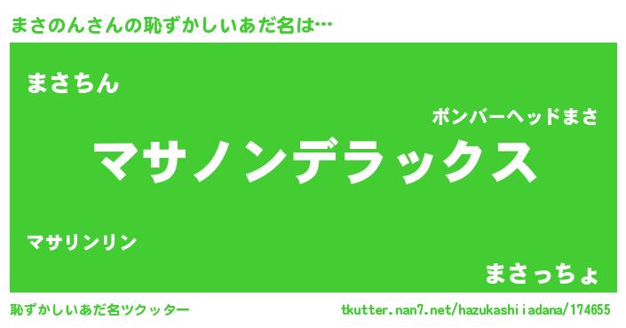 | 意味不明あだ名 | 『自称まさのん』『永久保存まさのん』 |
