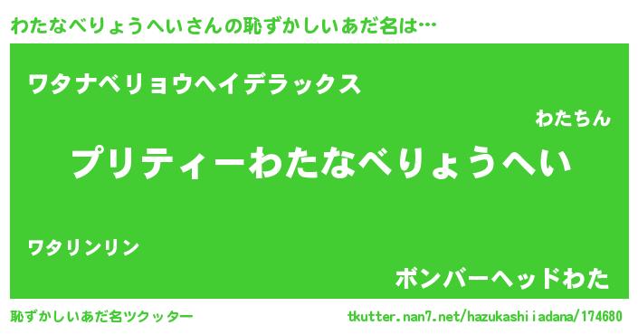 ヘコむあだ名 | 『わたにゅー』『わたなべりょうへい(笑)』 |