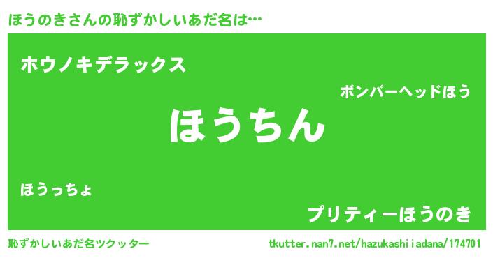 | 意味不明あだ名 | 『永久保存ほうのき』『自称ほうのき』 |