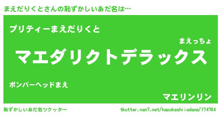 | 男性向けラノベタイトル風あだ名 | 『Re:まえだりくとから始める異世界生活』 |
