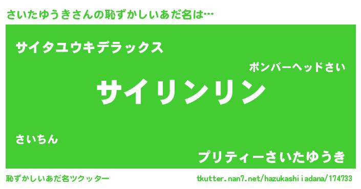 | 意味不明あだ名 | 『住所不定無職さいたゆうき(93歳)』 |