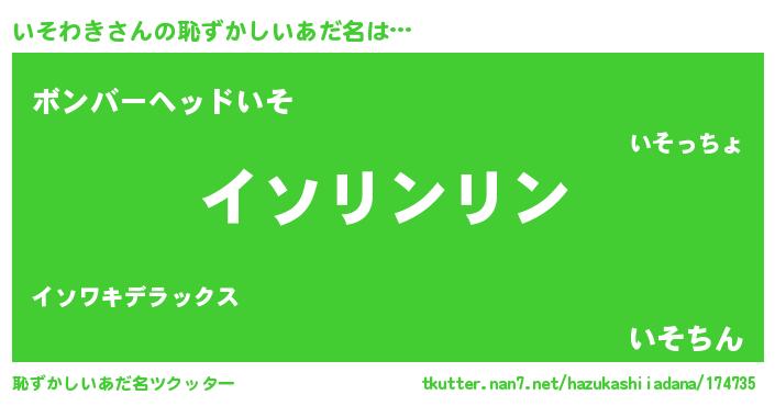 | 意味不明あだ名 | 『とにかく怪しいいそわき』 |