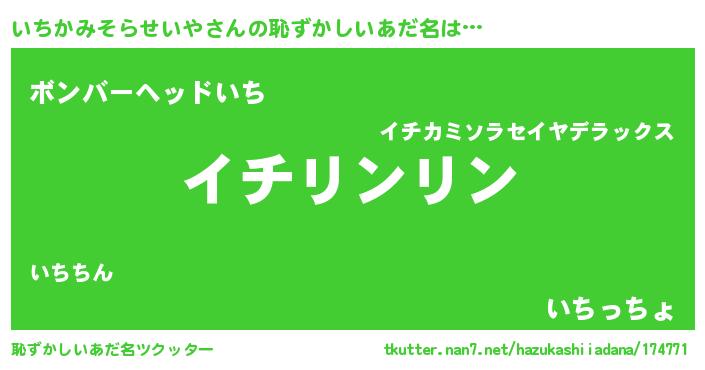 | 意味不明あだ名 | 『とにかく怪しいいちかみそらせいや』 |