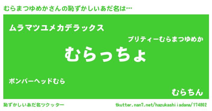 | 意味不明あだ名 | 『むらまつゆめかフォーエバー』 |
