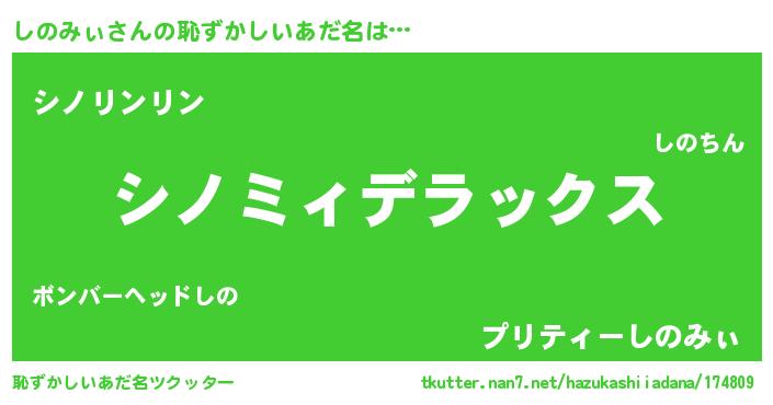 | 意味不明あだ名 | 『自称しのみぃ』『もやし科しのみぃ属』 |
