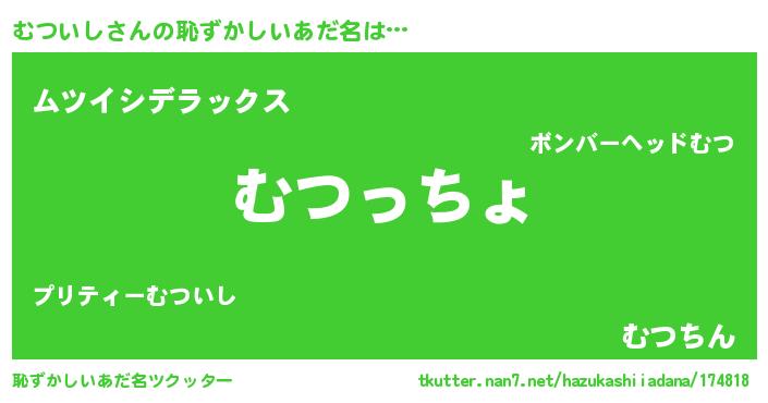 | 意味不明あだ名 | 『むついしフォーエバー』『自称むついし』 |