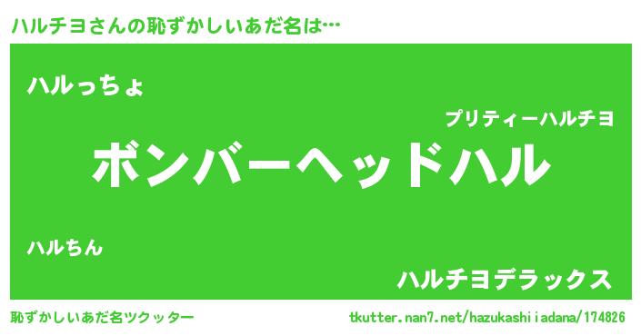 | ヘコむあだ名 | 『なまこ酢』『ハルにー』『ハル太郎』 |