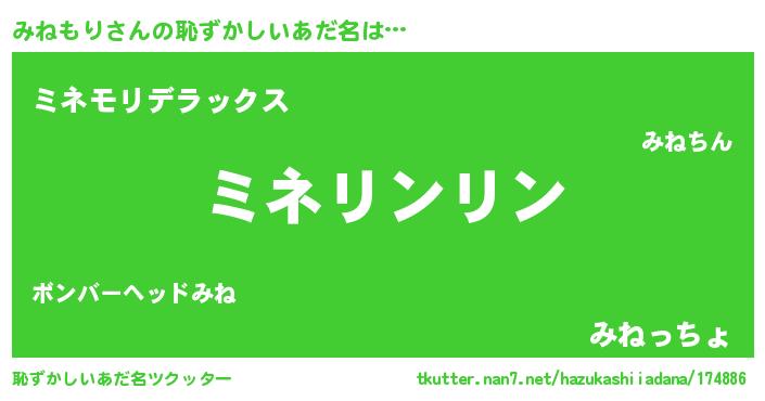 | 意味不明あだ名 | 『とにかく怪しいみねもり』 |