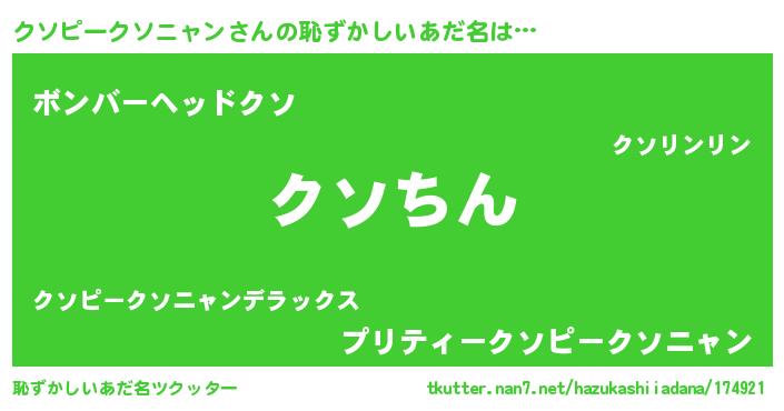 | 伝説のあだ名 | 『古より伝わる暗殺者クソピークソニャン』 |