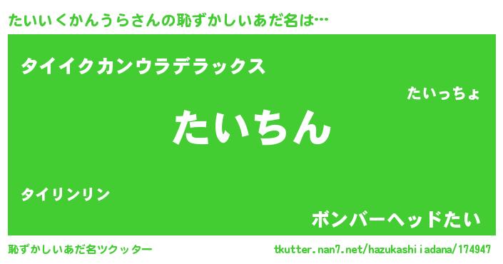 | 可愛いあだ名 | 『たいいくかんうらママ』『たいうちぇる』 |