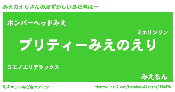 | ヘコむあだ名 | 『みえっふぃ~』『みえのえり(笑)』 |