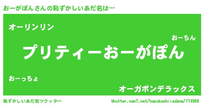 | 胡散臭い通販商品みたいなあだ名 | 『必ず成功する霊験あらたかなお札…その名も「おーがぽん」』 |