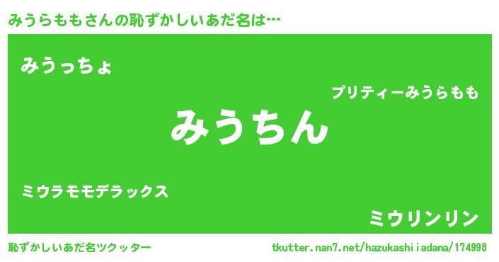 | 意味不明あだ名 | 『永久保存みうらもも』 |