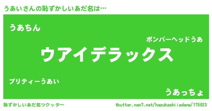 | 女子向けラノベタイトル風あだ名 | 『うあいなんてお断りですっ。』 |