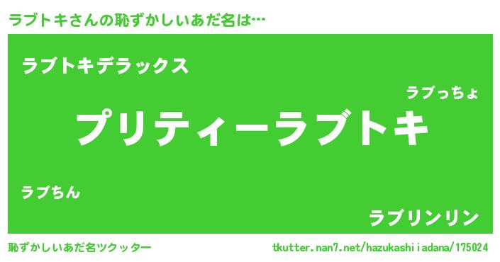 | 意味不明あだ名 | 『ペロリンラブトキ』『自称ラブトキ』 |