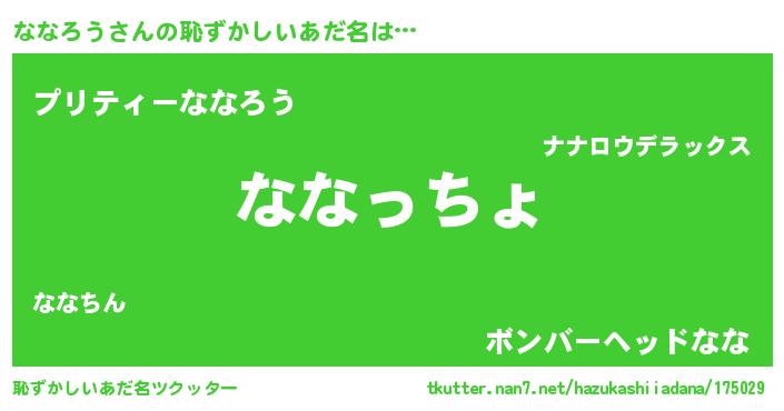 | ヘコむあだ名 | 『酢こんぶ』『ななにー』『ななを』 |