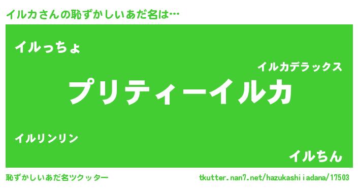 | ヘコむあだ名 | 『イルにゅー』『豆乳』『イルカ(笑)』 |
