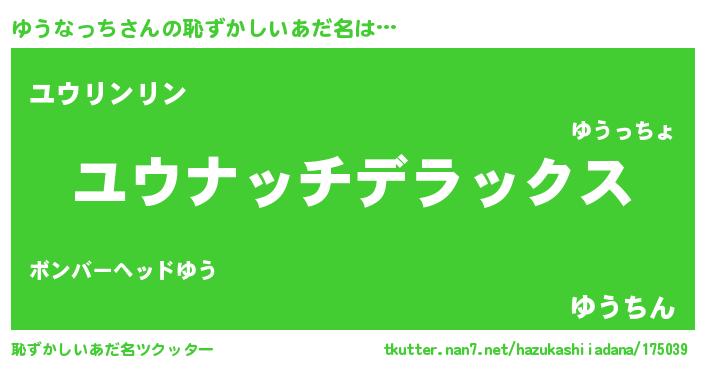 | ヘコむあだ名 | 『ゆう太郎』『ゆうなっち(爆)』 |