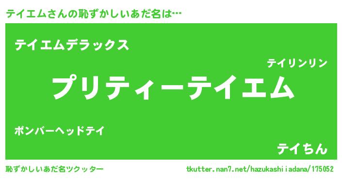| ヘコむあだ名 | 『テイふぇ~』『テイエム(震え声)』 |