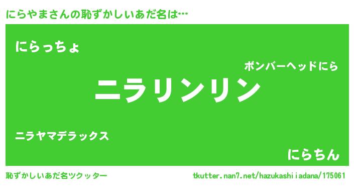 | ポケモン風あだ名 | 『ヒニラヤマ』『ニラヤダネ』 |