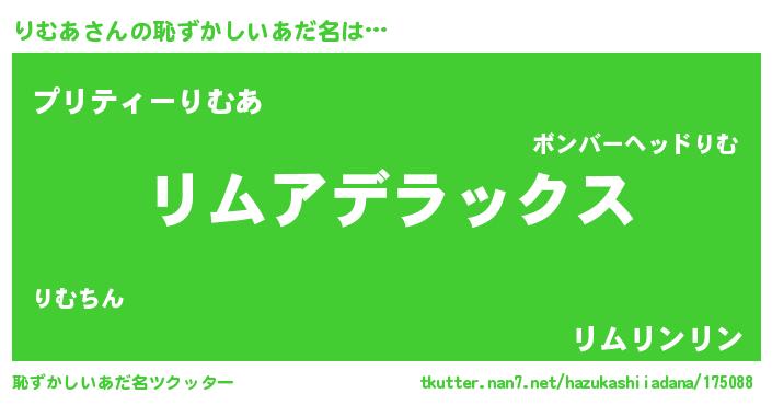 | ヒーロー風カッコイイあだ名 | 『サイバー戦士リムア』『スーパーリムア』 |