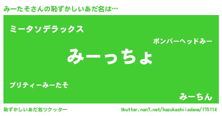 | 意味不明あだ名 | 『みーたそフォーエバー』『自称みーたそ』 |