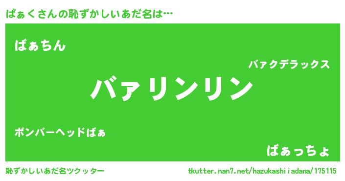 | ヘコむあだ名 | 『ばぁを』『ばぁく(苦笑)』『つくし』 |