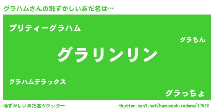 | 意味不明あだ名 | 『とにかく怪しいグラハム』 |