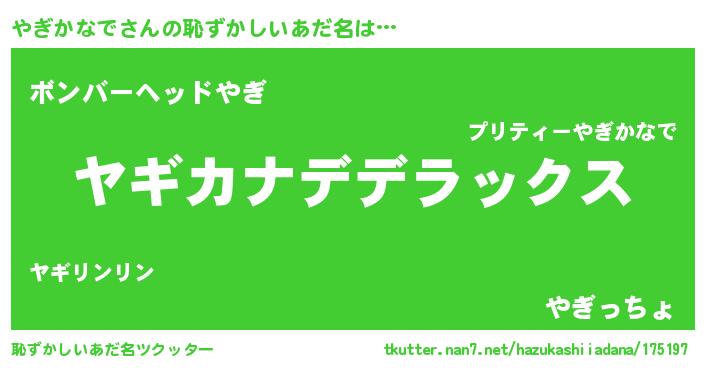 | 意味不明あだ名 | 『自称やぎかなで』『ペロリンやぎかなで』 |