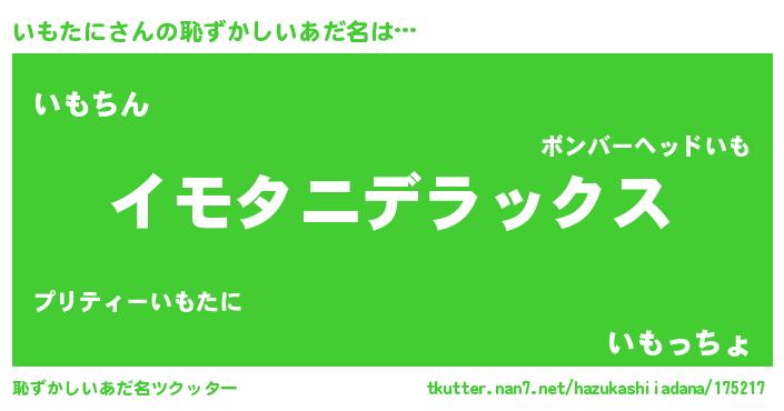 | 男性向けラノベタイトル風あだ名 | 『Re:いもたにから始める異世界生活』 |