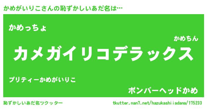 | 意味不明あだ名 | 『自称かめがいりこ』 |
