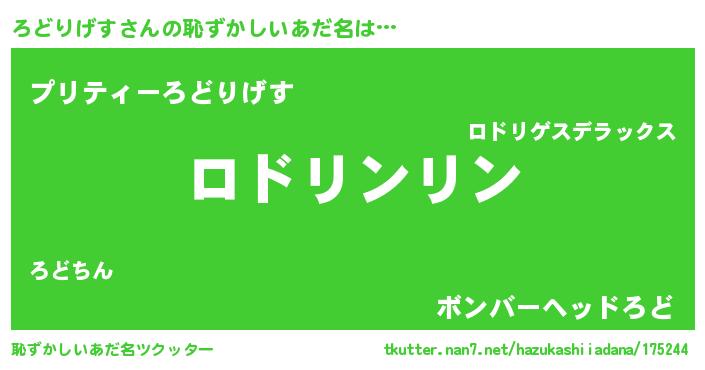 | 意味不明あだ名 | 『とにかく怪しいろどりげす』 |