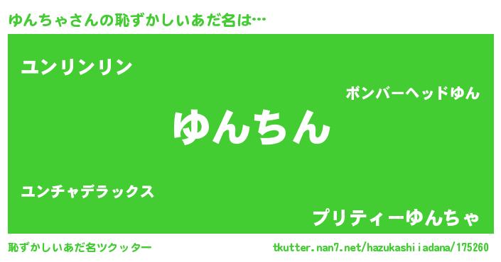 | ヘコむあだ名 | 『ゆんちゃ(苦笑)』『ゆん太郎』 |