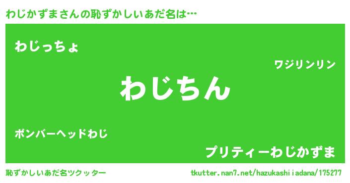 | ヘコむあだ名 | 『わじかずま(苦笑)』『豆乳』 |